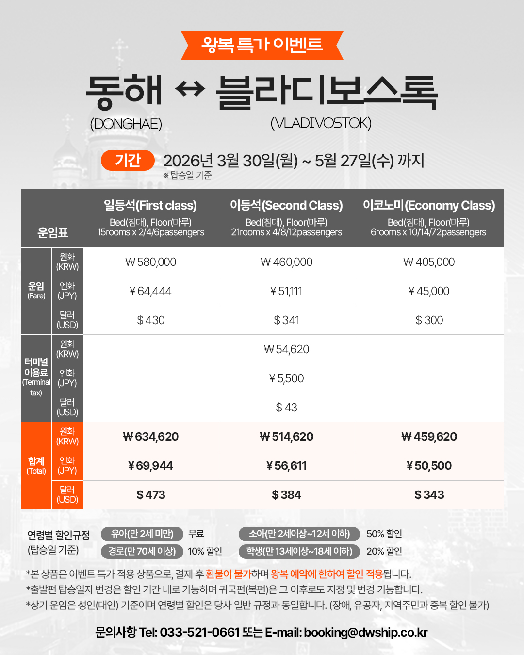 동해-블라디보스톡 특가 이벤트 (2026.03.30~05.27)